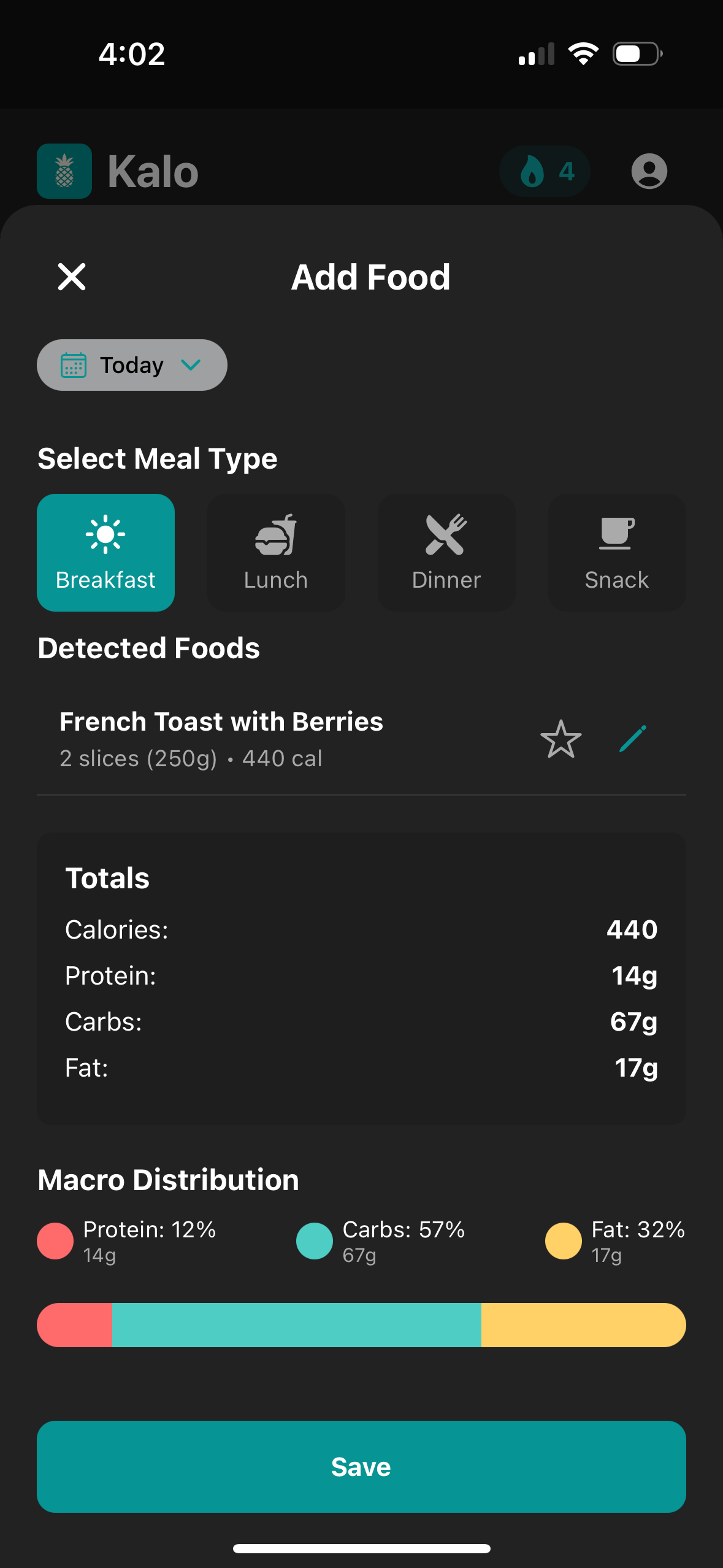 I started using Kalo to get a better idea of my daily nutrition and thought the idea of incorporating AI would be interesting to test out. It's been a game changer! I love that I can just take a quick picture of my meal and then get a snapshot of the macros and calories.